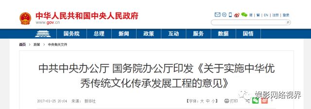 2015年,针对电视娱乐节目过多、跟风严重、内容质量不高,相关部门下发了多项相关政策。2017年1月,中共中央办公厅、国务院办公厅印发《关于实施中华优秀传统文化传承发展工程的意见》,要求文艺创作要“善于从中华文化资源宝库中提炼题材、获取灵感、汲取养分”。