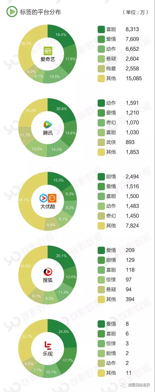 排名前十的网大中,有7部是在爱奇艺独播,腾讯2部,优酷1部。