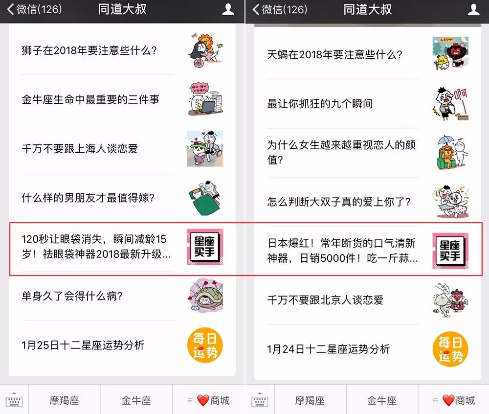 “内容运营上,我们于2017开设栏目,并将其日常化,新浪微博设有《你好明星》等栏目,微信上则是《星座买手团》、《每日运势》等,不同平台的内容有所区隔。”李晗介绍说,2017年开设星座买手团栏目,每日定时推送相关美妆话题的内容,考虑到粉丝也需要这一类产品,就把这一栏目在内容推送时重点标记。