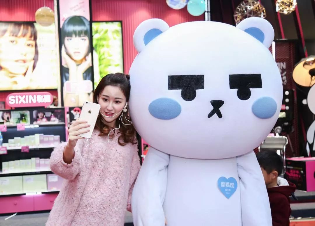 4、线下实体店赋能,构建消费场景,货柜以星座IP形象为主定制而成。2017年11月10日@私信携手江西幻彩美妆连锁,在上饶开展首场私信快闪店活动,为增加互动性,现场设有“寻找天外‘陨石’”游戏,寻找三款爆品就可获得精美礼品;设置占卜区,“占卜师”为消费者解读星座运势,强化同道大叔“星座属性”IP特质;邀请网络红人现场直播,线上扩大活动的影响力。