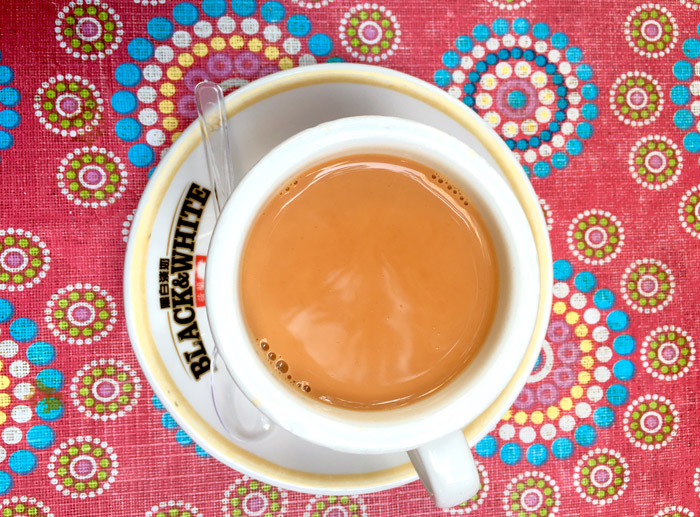 “现在我们喝的正是香港地道的丝袜奶茶,它比一般奶茶的茶味更重、更香,而且口感非常顺滑,有人知道它为何叫丝袜吗?”坐在黄大仙大排档的一个有名的奶茶店铺外,香港导游小张确保每人面前都被端上一杯热热的奶茶,然后开始讲起了丝袜奶茶的传统:制作奶茶过程中,为了滤走茶渣、使红茶更香滑,要用一个棉纱网将煮好的锡兰红茶先行过滤,棉纱网染上茶渍后颜色有些类似丝袜,久而久之便得名“丝袜奶茶”。
