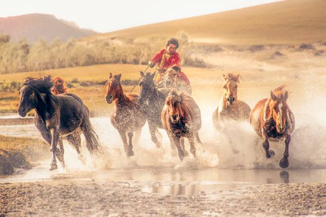 运气好,还能偶遇一群群逐水草而居的游牧民族。