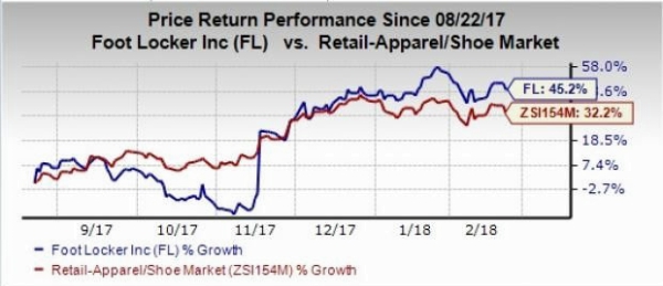 全新计划公布的同时,Foot Locker表示将季度派息提高11%至34.5美分,以奖励股东。截至2018年2月22日的6个月内,该公司的股价提升达45.2%,超过运动鞋服行业的32.2%增幅。