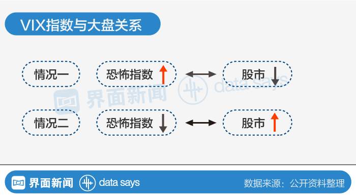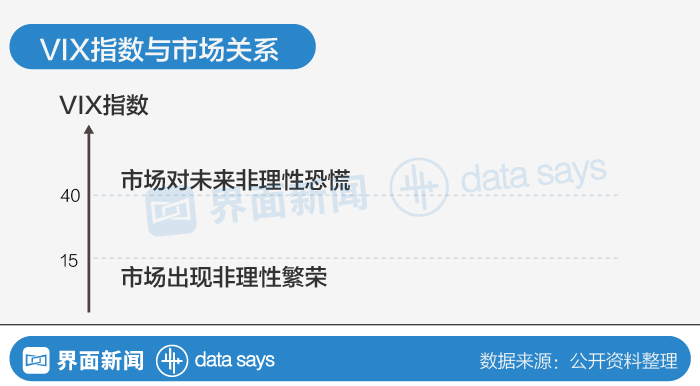 “恐慌指数”即芝加哥选择权交易所波动率指数,简称VIX指数,用来反映标准普尔500指数期货的波动程度。因为一个高VIX的市场往往意味着恐慌情绪的蔓延,故在海外VIX也被戏称为“恐慌指数”,被看做是领先市场的风险指标。