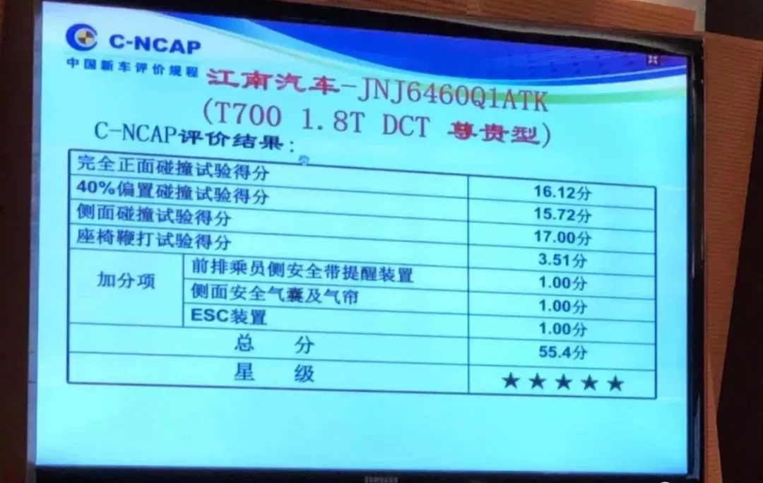 其实能到5星也是主动安全配置加了许多分,这55.4分在碰撞成绩也是只到4星的范畴。
