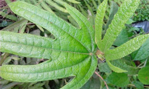 五指毛桃,俗称牛奶木、土黄芪、土五加皮、火龙叶、九龙根、五爪桃、粗叶榕等。虽然名字里有“毛桃”,但五指毛桃并不是桃,只是因为叶子长得像五指,且叶片长有细毛、果实成熟时像毛桃而得名。