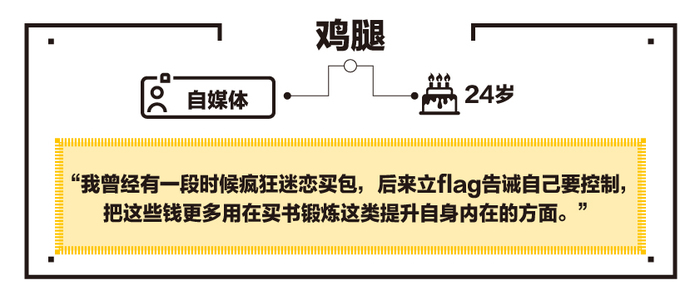 A:我曾经有一段时候疯狂迷恋买包,后来立Flag告诫自己要控制,把这些钱更多用在买书锻炼这类提升自身内在的方面。现在成功完成这个Flag,很有成就感!当然适当的买包还是可以的。