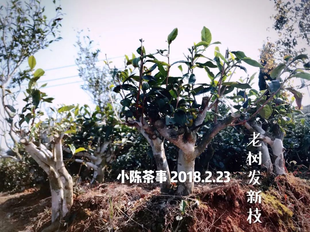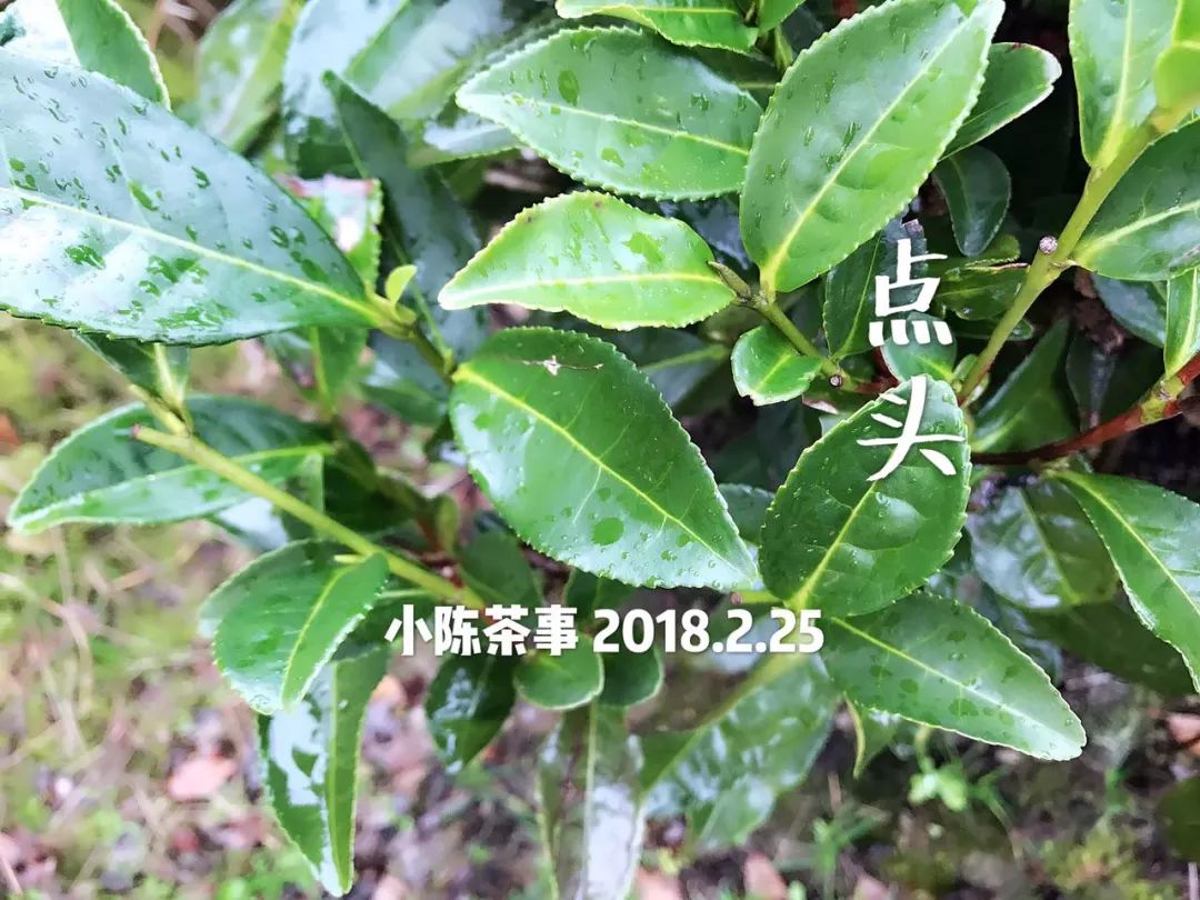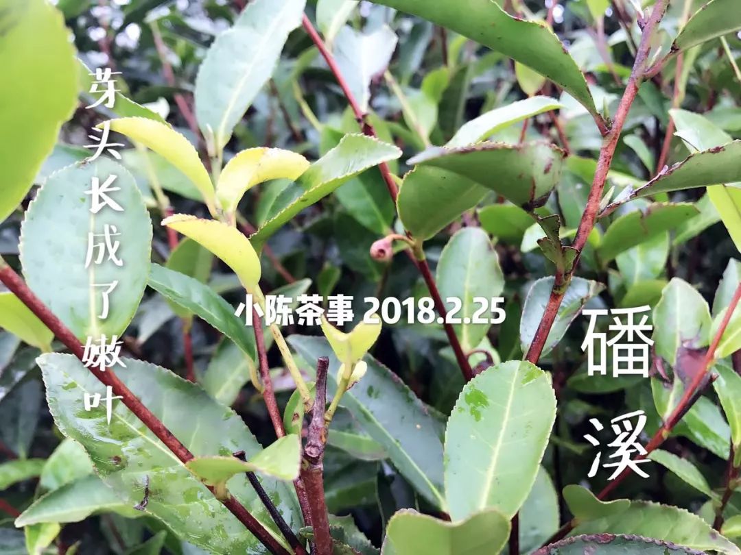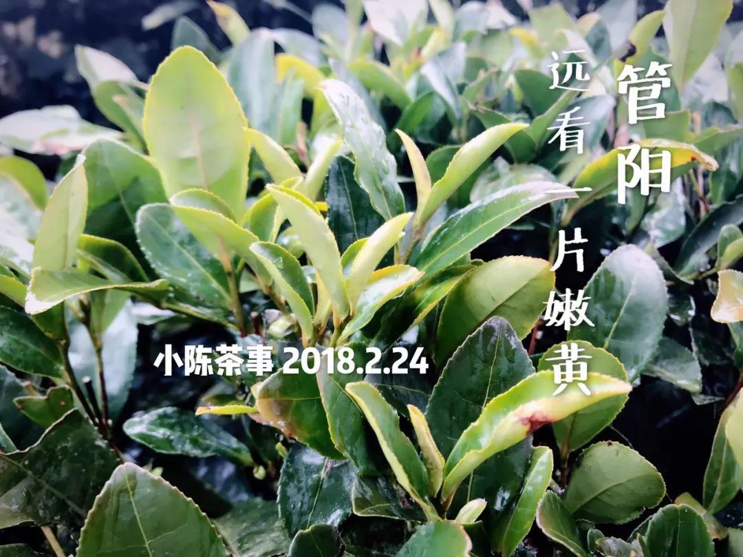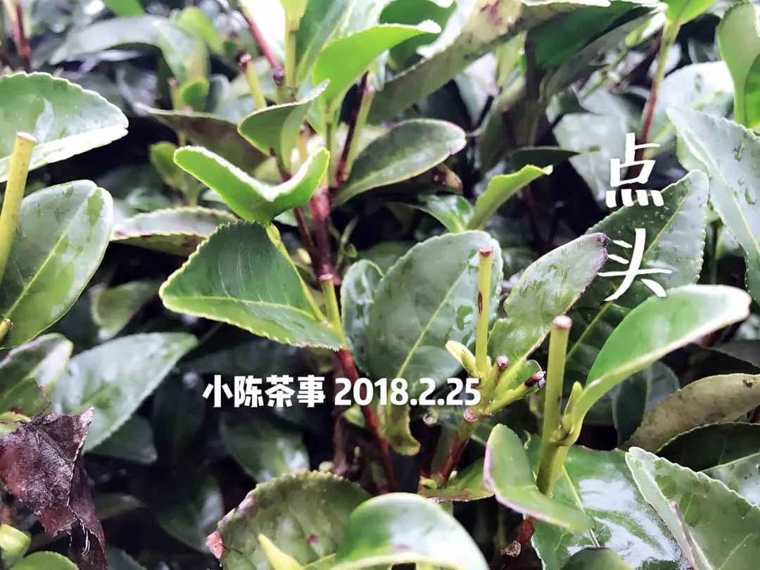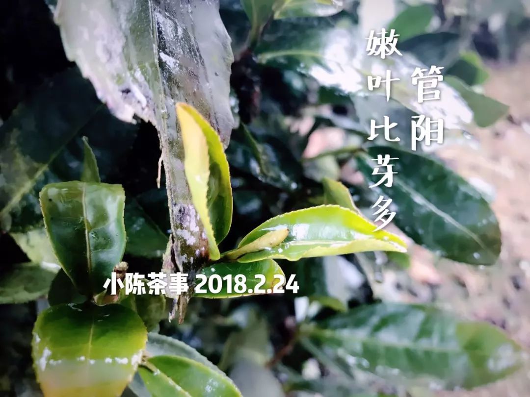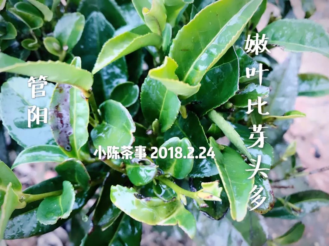 看来海拔低一点,温度高一点,茶树就发育得快一点。太姥还是芽头,管阳的嫩叶就发出来了。