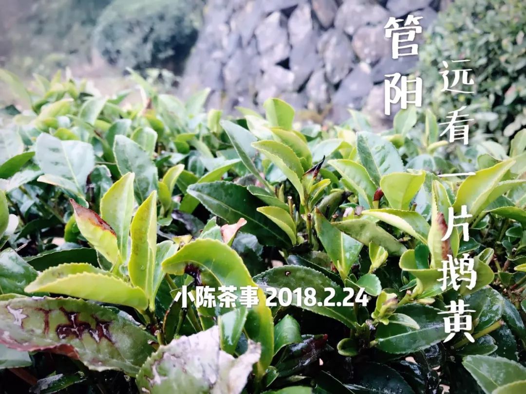 茶树的生长情况与管阳类似,芽头少了,嫩叶片多了,远远望去,不比点头平地茶园的翠绿,而是与管阳一般,鹅黄叶片梢头俏,如同一个穿黄衫的姑娘。