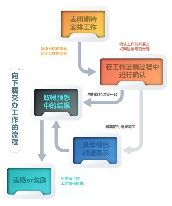 很多时候也有一些情况,员工辛辛苦苦干完,结果和自己的预期相差甚远,那该怎么办?此时,主管应该很清晰地表达希望下属做出成绩。在具体交代工作时,必须向下属表明自己希望他们达到什么样的标准和基本目标,要通过具体描述来降低出错的风险,具体方法可以参考图2所述的简单流程来进行。