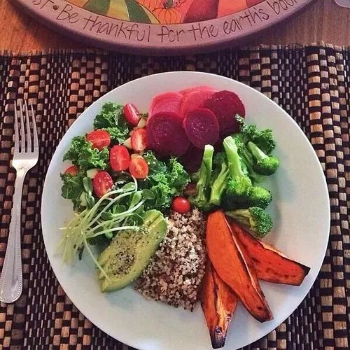 午餐:煮玉米or红薯or紫薯or土豆等杂粮主食(两拳)+水煮西兰花(一拳)+生蔬菜(两拳)+坚果补充油脂(半拳)
