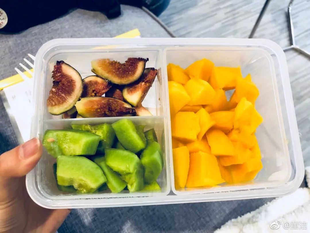 这是工作间隙,董洁提前准备好的水果拼盘。无所事事的时候,总想吃点什么填补空落落的嘴,水果和坚果都是不错的选择。