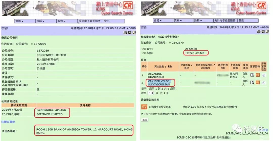 而Tether也在香港有注册公司,公司董事也是这位Van Der Velde先生。