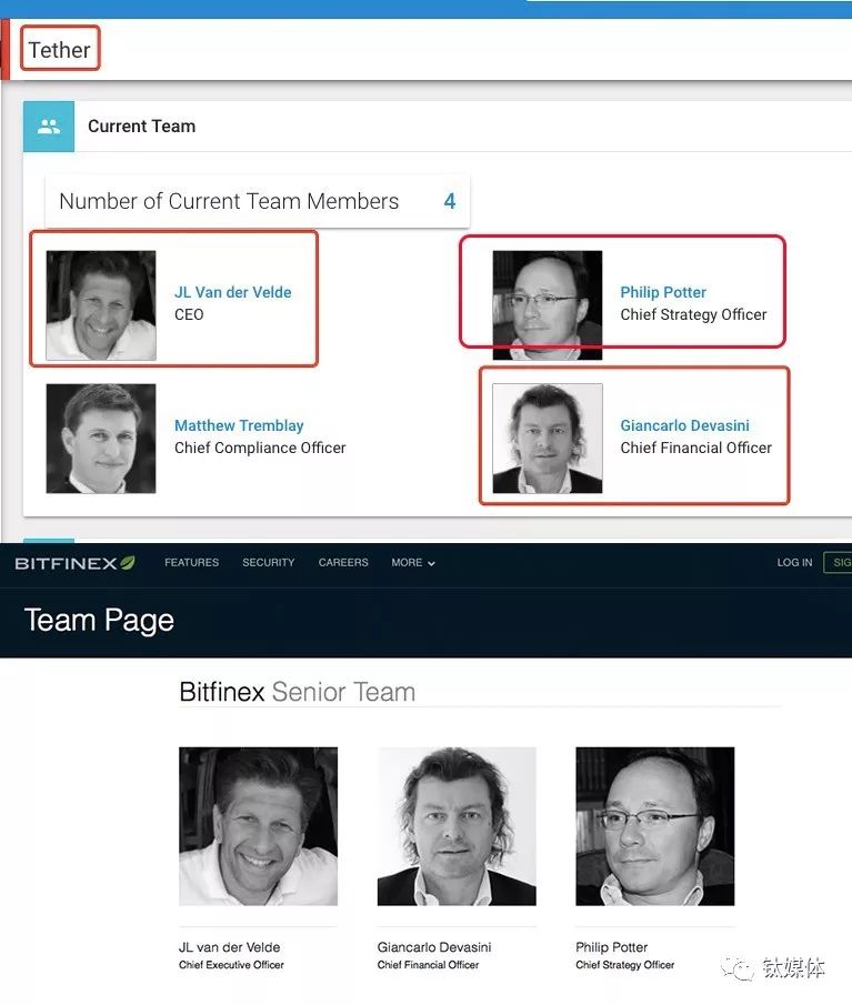 综合公开信息发现,Bitfinex和Tether的CEO、CFO、以及首席战略官等核心人物都高度一致。所以,准确地说Bitfinex和Tether几乎是同一批人掌握的公司。