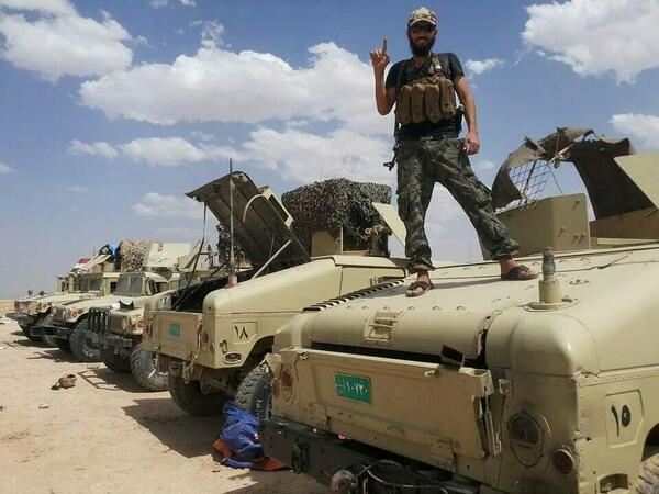 在伊北部陆军基地内,ISIS夺取了数辆的“悍马”、MRAP防雷反伏击车、M113装甲车、T-55坦克,以及59-1型130毫米加农炮、反坦克炮和装有重机枪的丰田皮卡。在摩苏尔机场,ISIS甚至缴获了几架UH-60“黑鹰”直升机和固定翼运输机。
