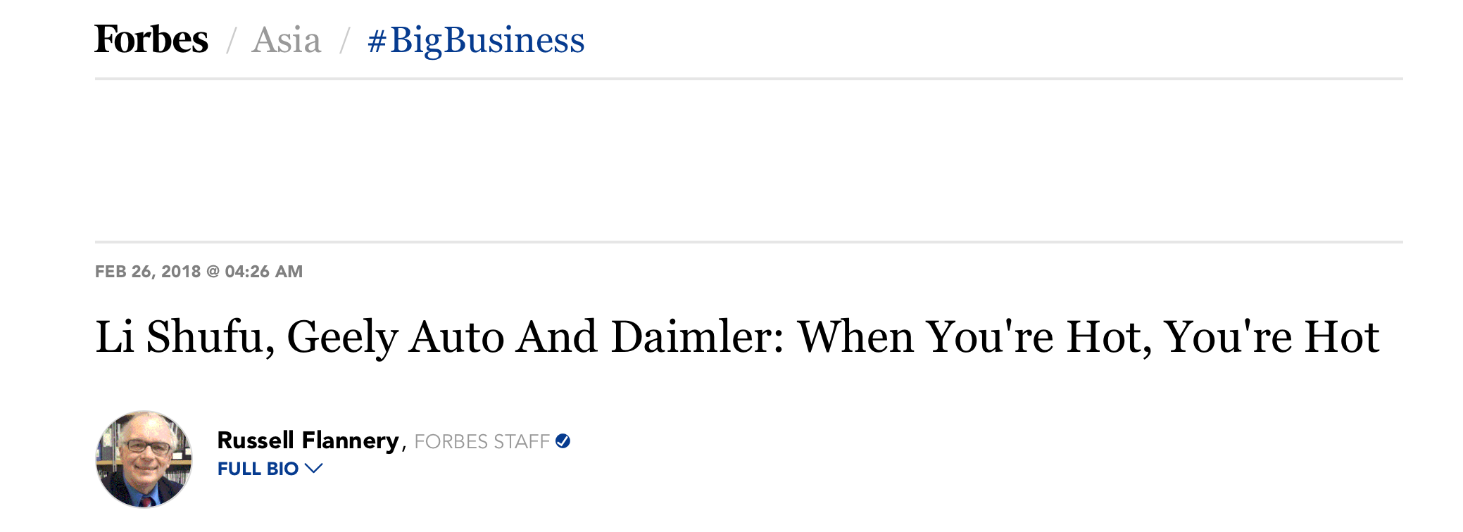 《福布斯》杂志上海分社社长范鲁贤(Russell Flannery)在一篇评论文章中写道,既然与欧洲高端品牌沃尔沃合作的案例能让吉利获益,这家中国企业的投资者为什么不能期待,在戴姆勒这笔交易上也能有同样好的结果呢?他说,当你火的时候,你就是火的。
