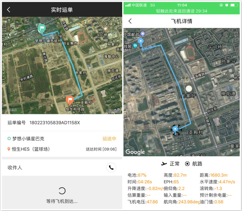 新路线的目的地在恒生科技园,距离梦想小镇星巴克店大概1.7公里,新投入使用的无人机要这两点间来回试飞至少4回。“每在城市开辟一条新航线,我们很谨慎,需要不断试验看是否存在一些隐患。”