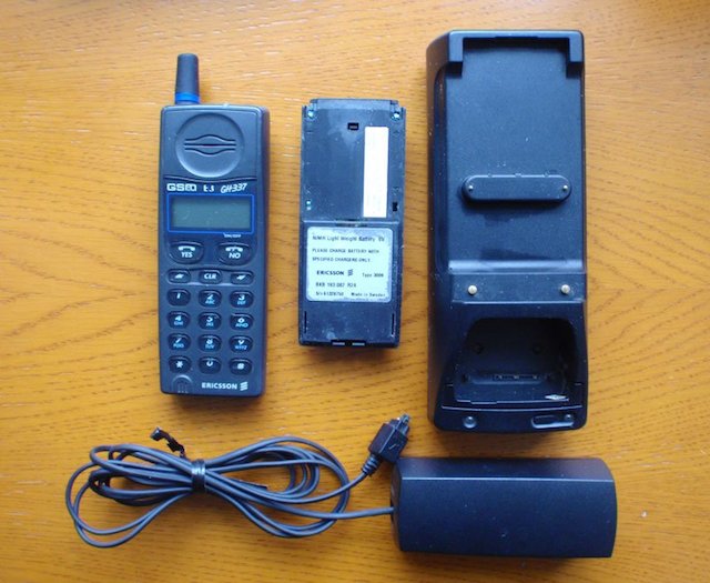 下面这部爱立信在当时已经很高大上了,可是电池仍然和手机一样大好吗。