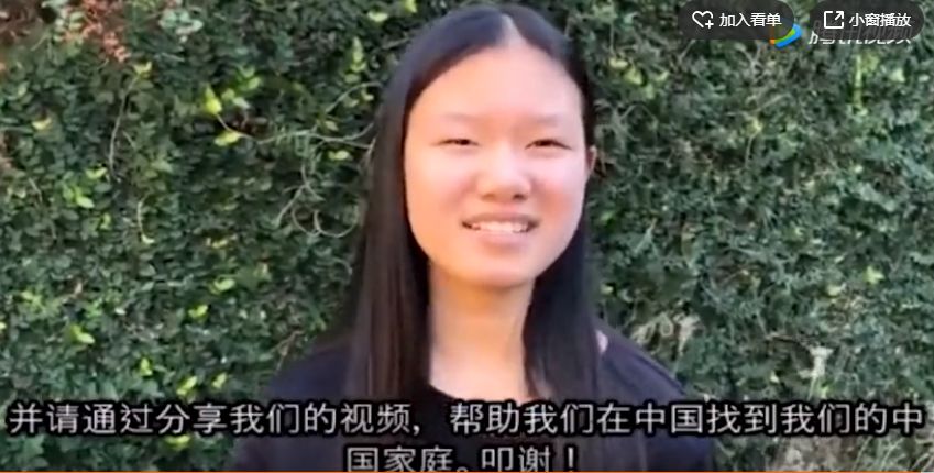 “你们好,我是一个被领养的重庆孩子。有些中国父母因为各种原因,把自己的孩子送去领养。也许这些父母被告知他们的孩子还居住在中国,但我们中的许多孩子已经被国外的家庭领养了。视频中的我们,对自己的中国根很感兴趣,并且想要寻找我们的亲生父母。希望你们可以仔细观看,并且分享这个视频。请帮我们找到在中国的亲生父母吧。”