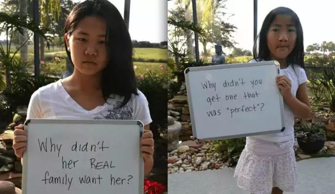 这些孩子虽然得到了养父母的爱,但在他们的成长过程中,也遭遇了许多别人意想不到的伤痛。一对被收养的华裔姐妹,曾经面对镜头写下了她们最伤人的话:“她真正的家为什么不要她?”“你怎么不挑一个更漂亮点的(小孩)?”