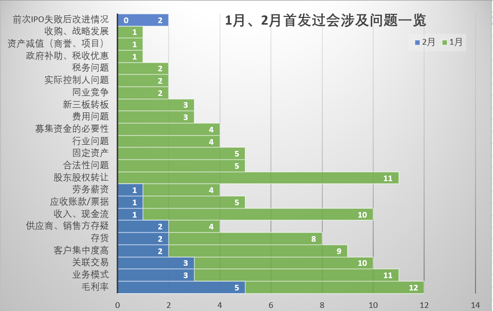 根据2月发审委对上会企业提出的相关问题,可以发现发审委关注的重要角度依然包含毛利率变化、关联交易以及收入等。但是,在1月多次提及的募集资金的必要性、费用问题等更为细节性的问题,在此次过会的12家公司中并未提及过。但是这并不代表发审委不再重视。“可能与这次过会的上市公司所处行业有直接关系。”一位投行人士对界面新闻表示。