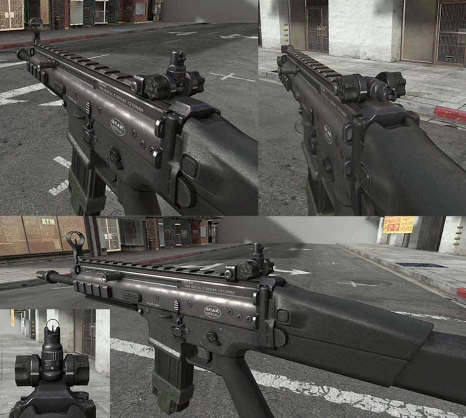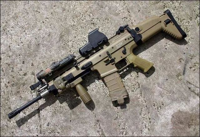 Scar是特种部队战斗突击步枪(SOF CombatAssault Rifle,SCAR)的名称缩写,是由比利时枪械制作及生产公司Fabrique Nationale(FNH)制造的现代步枪,为满足美军特战司令部的SCAR标案而特制,此枪于2009年开始服役,曾参与2001年阿富汗战争、2003年伊拉克战争、墨西哥毒品战争等。全长787毫米,口径5.56毫米,重量3.04千克,弹容量20发,有效射程600米,主要分两版,在游戏《绝地求生》和电影《红海行动》中见到的为5.56 NATO的SCAR-L(轻型版)。