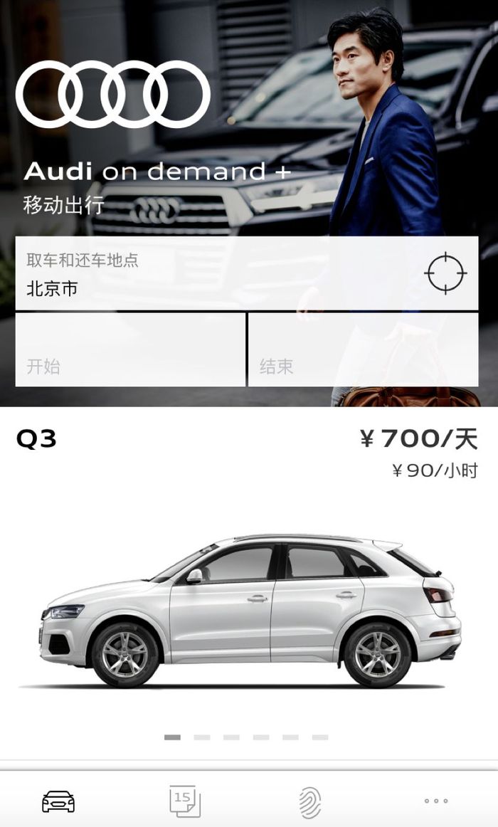而在中国市场,2017年9月,一汽-大众奥迪旗下“Audion demand+ 移动出行”(奥迪出行)正式登陆中国并率先在北京上线运营。用户可通过手机App线上进行预约订车,从跑车、轿车再到SUV,用户所能够预定的车型几乎涵盖奥迪全系。完成预约之后,会有专人上门提供送还车服务。收费方式按小时或者天算,四小时起租,各个车型收费不一,但相对市面上的分时租赁价格较高,属于高端出行服务。
