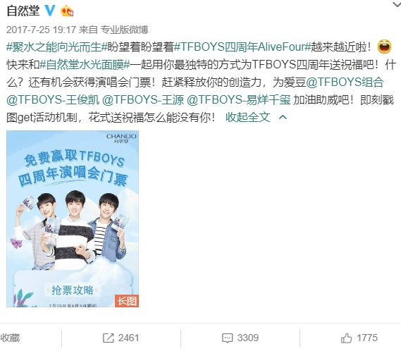 照此情况,上文提及的自然堂如果还能继续聘请TFBOYS组合担任代言人,怕是要拿出天价的签约费用才能创造组合合体代言的盛况了。