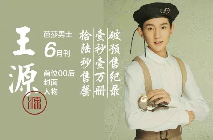 去年,王源登上《芭莎男士》6月刊封面,杂志预售时粉丝刷出了一秒一万册、十六秒售罄的记录。