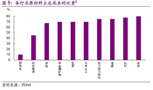 从2015年开始的供给侧改革导致煤炭、钢铁等原材料价格上涨,但涨价对下游制造业的挤压似乎还不是非常明显,貌似“赢者多输者少”(图4),各主要行业原材料占成本比重见图5。。我们在专题报告《成本飞升,赢者多输者少能否持续?》 中做过详细分析,本次调研也有实地了解。