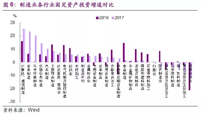 总体来看,比较好的制造业企业确实存在增加固定资产投资的需求,但背后的主要原因并非是需求大幅好转。再加上传统行业的制造业和小微企业投资动力不足,我们判断制造业投资增速持续明显反弹可能性较小,预计2018年全年制造业投资增长为5%左右,跟2017年全年相差不太大。