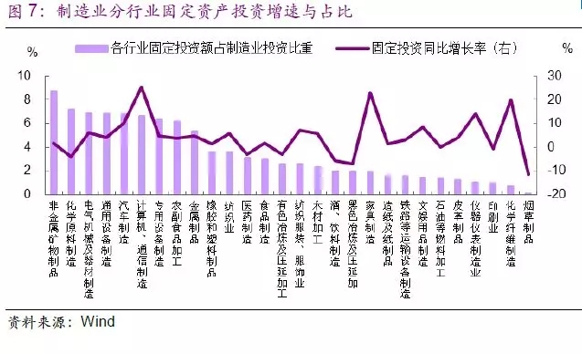 制造业中投资增速较高、且在整个行业中占比较高的行业,如计算机与通信制造、汽车、通用设备、电气机械、纺服、金属制品等行业,或将成为市场关注的焦点(图7)。