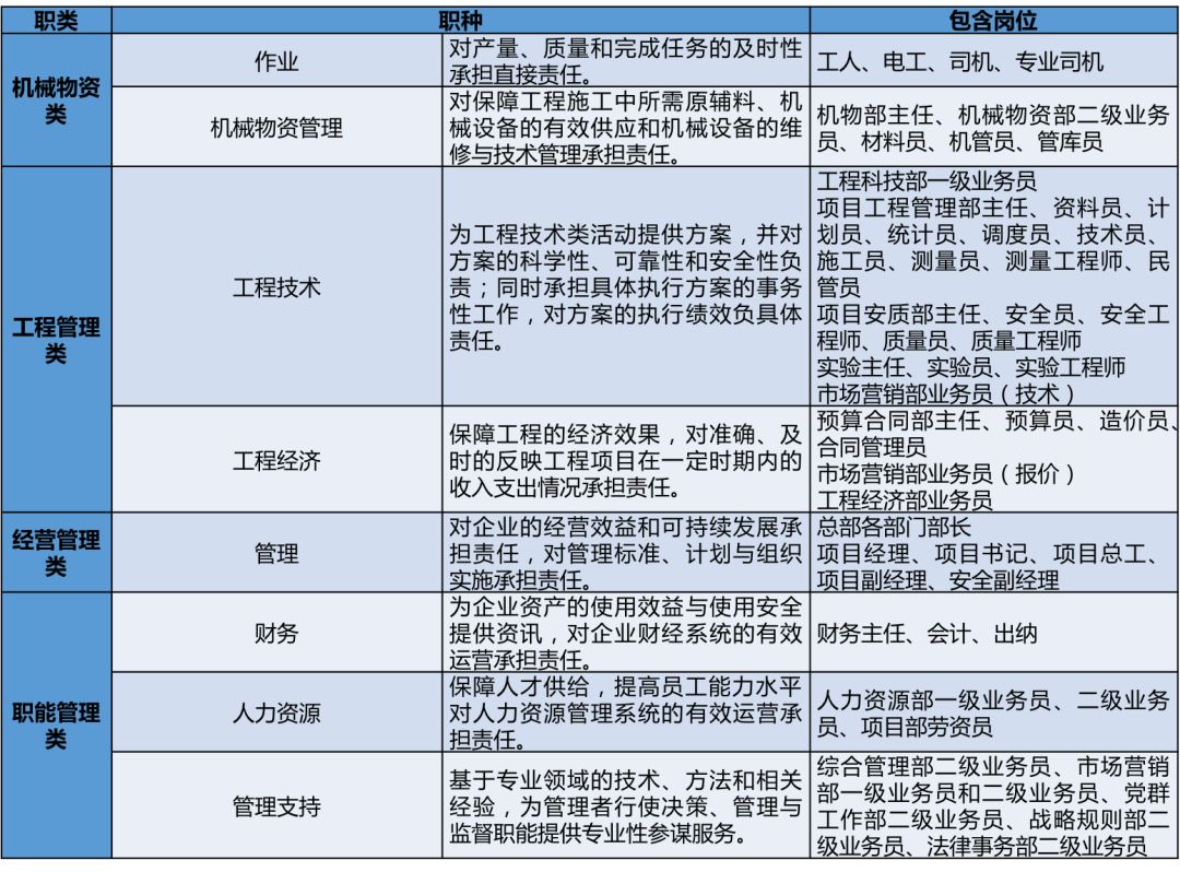 职系序列划分的目的是实现对人员的分类管理(参见下表:某工程企业序列划分)。其中,序列划分的总体原则可按自上而下划分为牵引,自下而上归并为路径,打破组织系统的框架进行岗位序列划分与职能归并。