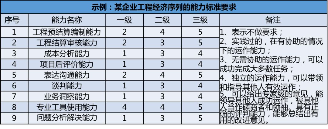 B类:通过培训能在较短时间内(1-2年)就可达到序列要求,且远离战略核心的序列,可分3-5级,如管理支持等序列。
