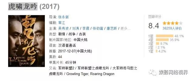 但是从台变网的《虎啸龙吟》似乎是“因祸得福”。上线首日点击量破亿,豆瓣评分8.4,近50%的观众打出一星评价。