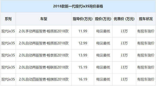 最好的例子就是北京现代ix35在2017年广州车展上以11.99-16.19万元的价格上市,价格直逼中国品牌紧凑型SUV,而如今现代ix35在如此低的市场指导价基础上,经销商还有3万元左右的优惠,优惠后的现代ix35性价比就更突出。也就是说,北京现代去年下半年销量的回暖,全靠价格战杀鸡取暖换取了销量的回升。