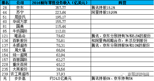 这15家企业包括了京东、苏宁、屈臣氏(香港)、华润万家、国美、牛奶国际(香港)、唯品会、百联股份、永辉超市、周大福(香港)、统一超商(台湾)、百丽国际(香港)、重庆百货、大商股份和农工商超市。