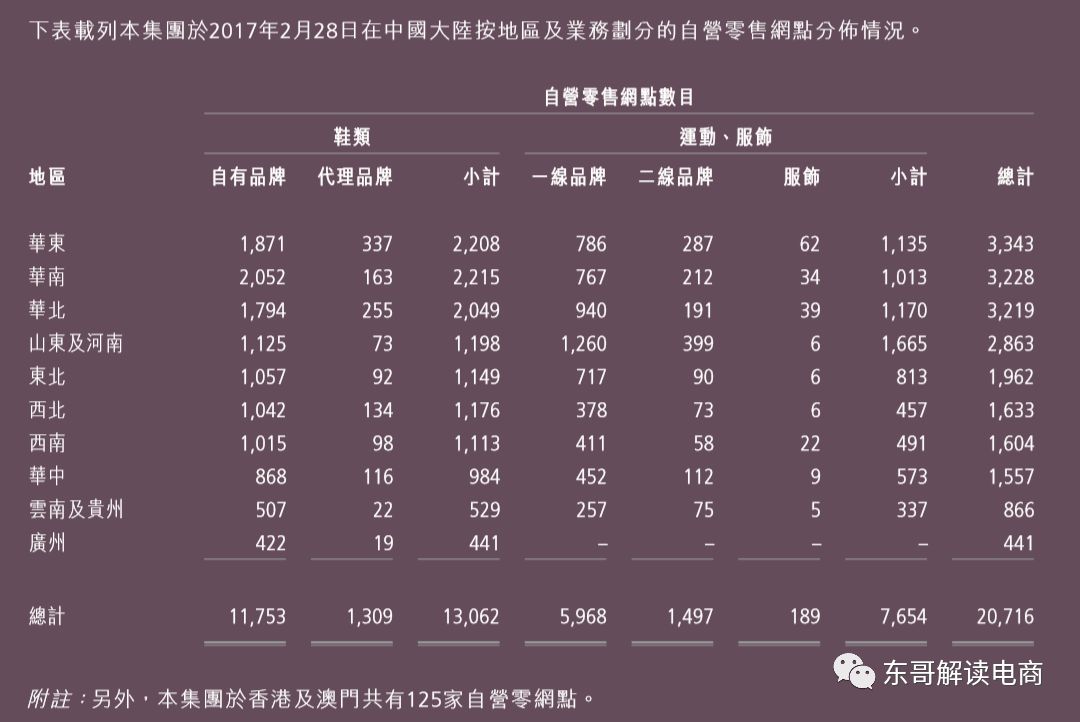 截止到2017年2月28日,百丽在国内共有20716个零售网点,包括了13000多家鞋店和7000多家运动服饰店。