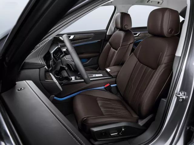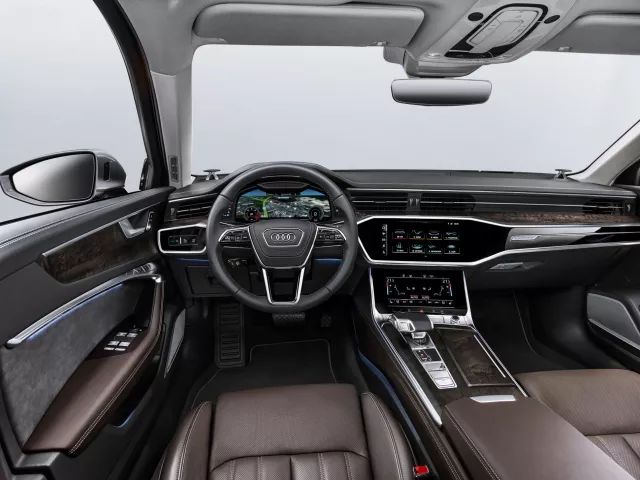 新A6的内饰布局几乎是A7、A8车型的翻版,它相比A7拥有更成熟的氛围营造,对比A8可能用料没有那么考究,12.1英寸Virtual Cockpit仪表盘,双触摸屏MMI信息娱乐系统组成了虚拟驾驶座舱,科技感依然是奥迪的拿手好戏。中控上的两块屏幕分别用以控制不同的功能,较低的触摸屏主要负责空调,上方屏幕则负责信息娱乐系统,官方称新A6还采用了自然语言语音控制系统。