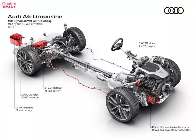 来自平台的共享优势让A6可与A8、A7使用同样的底盘结构、搭载48V轻混系统,发动机配备BAS(Battery Alternator Starter)系统等。整个车系目前只露出了两种动力选择,分别是3.0T V6和3.0T V6柴油版,匹配7速双离合变速箱,柴油版甚至可能不会引入到北美地区销售,当然对于中国消费者而言,国产后的2.0T车型才是重头戏。