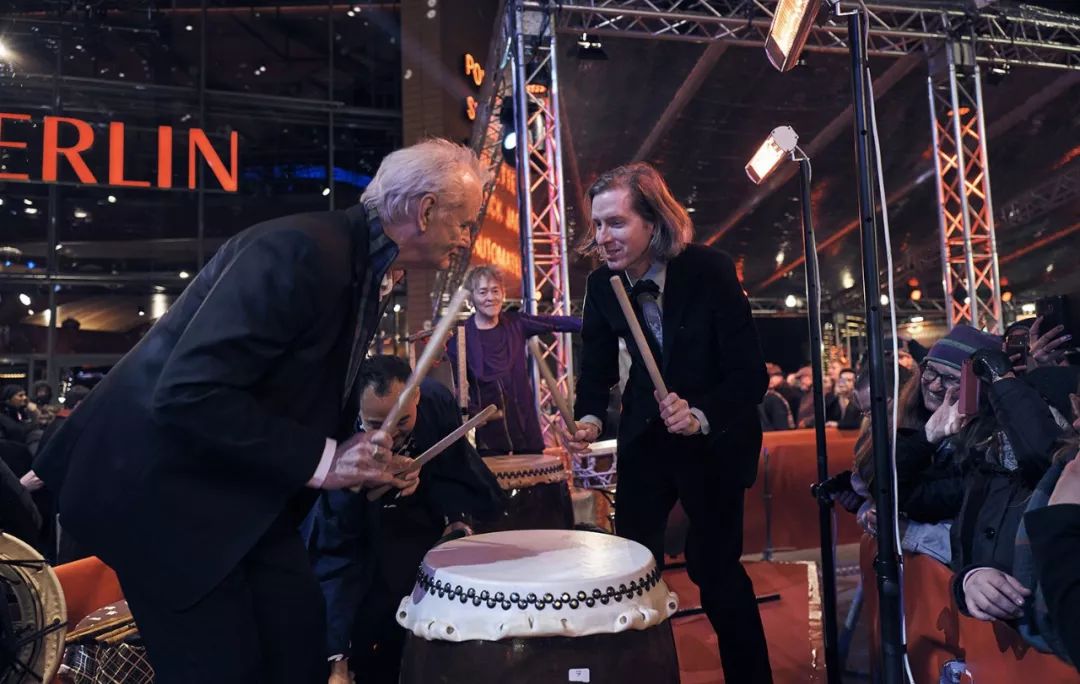 另外,在此次柏林电影节开幕当天,韦斯·安德森和比尔默里在红毯上居然还敲起了日本的代表乐器太鼓助兴,玩得不亦乐乎哦!