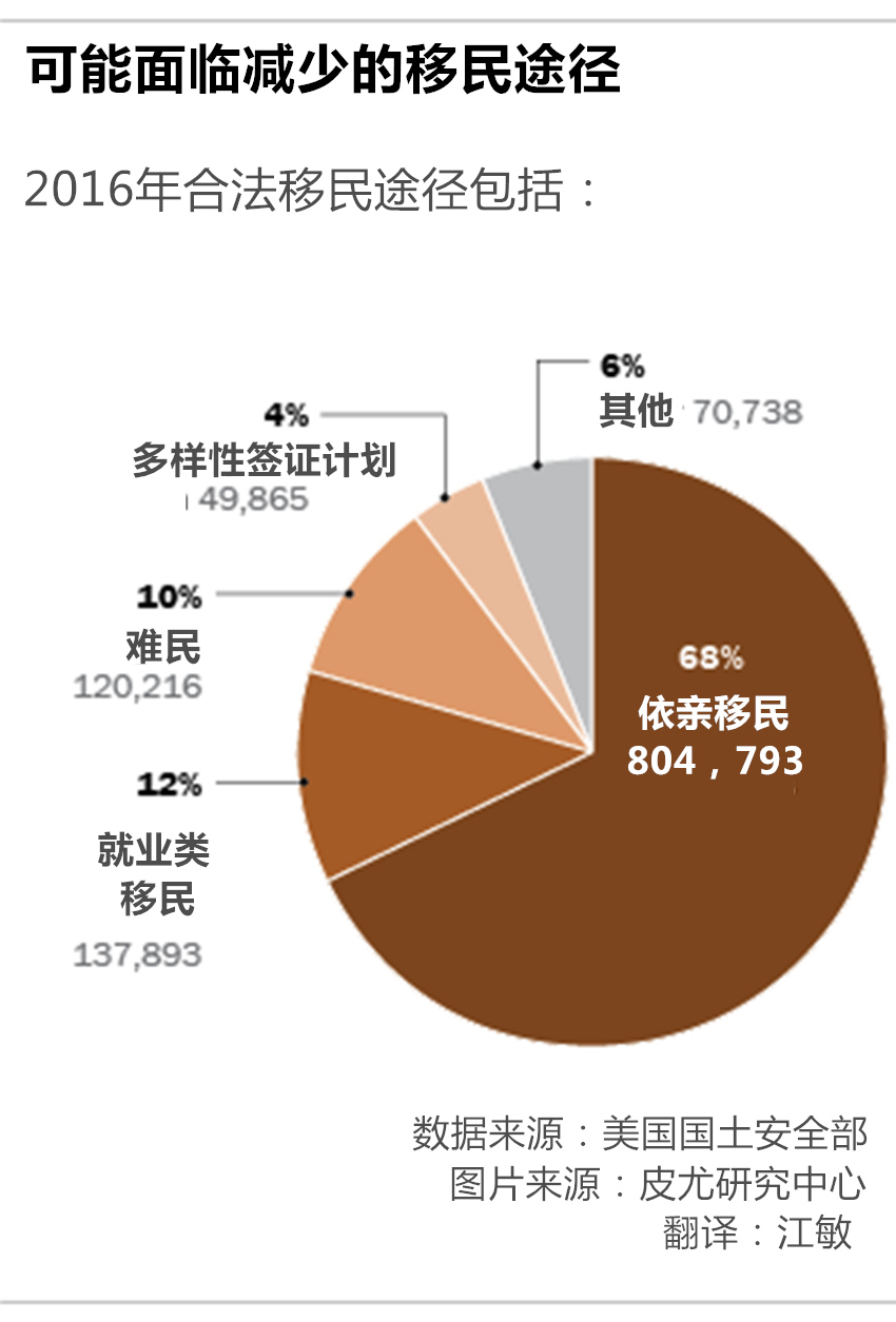 毫无疑问的是,政策制定者们在重新审视移民给美国社会带来的“价值”。以前,多数移民通过“家庭团聚”的方式获得美国绿卡,但其教育水平和职业技能却令人堪忧。特朗普政府决定改变这一局面,不少提案围绕“就业为基础的移民”展开讨论,主要移民政策将发生变化,产生新格局。