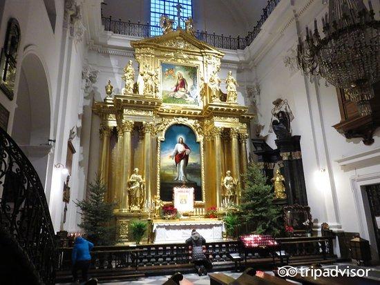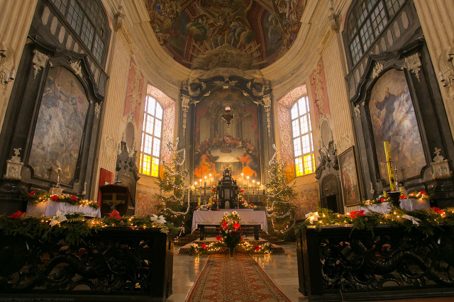 在华沙大学对面的圣十字教堂内外皆古色古香,除了天主教堂一般的各种圣像,最值得一提的是音乐家肖邦遗嘱中叮咛的:将他的心送回华沙,留在教堂里,代表一片丹心的爱国赤诚。这是到了华沙必须瞻仰之处。当你走进来的时候,左边的第二个支柱,你很难错过,因为在柱子底部有一束鲜花。他的心在牌匾下面,储存在一个干燥的容器里。