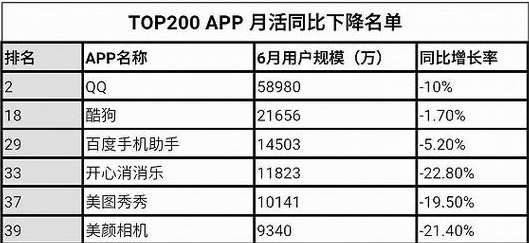 根据QuestMobile的《移动互联网2017年Q2夏季报告》,美图秀秀和美颜相机的用户活跃度在明显下降,美图秀秀月同比下滑19.5%,美颜相机同比下滑21.4%。美图秀秀还能勉强保持月活在1亿以上,美颜相机已经破跌1亿,昔日在美图修图市场一家独大已是昨日光景。