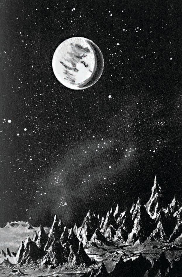 那些闪烁的星光可能是一方新天地,我们通过太空旅行就可以到达那里,这些想法对于古时候的人们来说真是太匪夷所思了,当时幻想太空飞行的故事屈指可数,而月球则是唯一的目的地。即便在这些幻想中,人们也不会把月球全然视为一个真实存在的、可到达的去处,而只是一个虚幻缥缈的世外桃源。