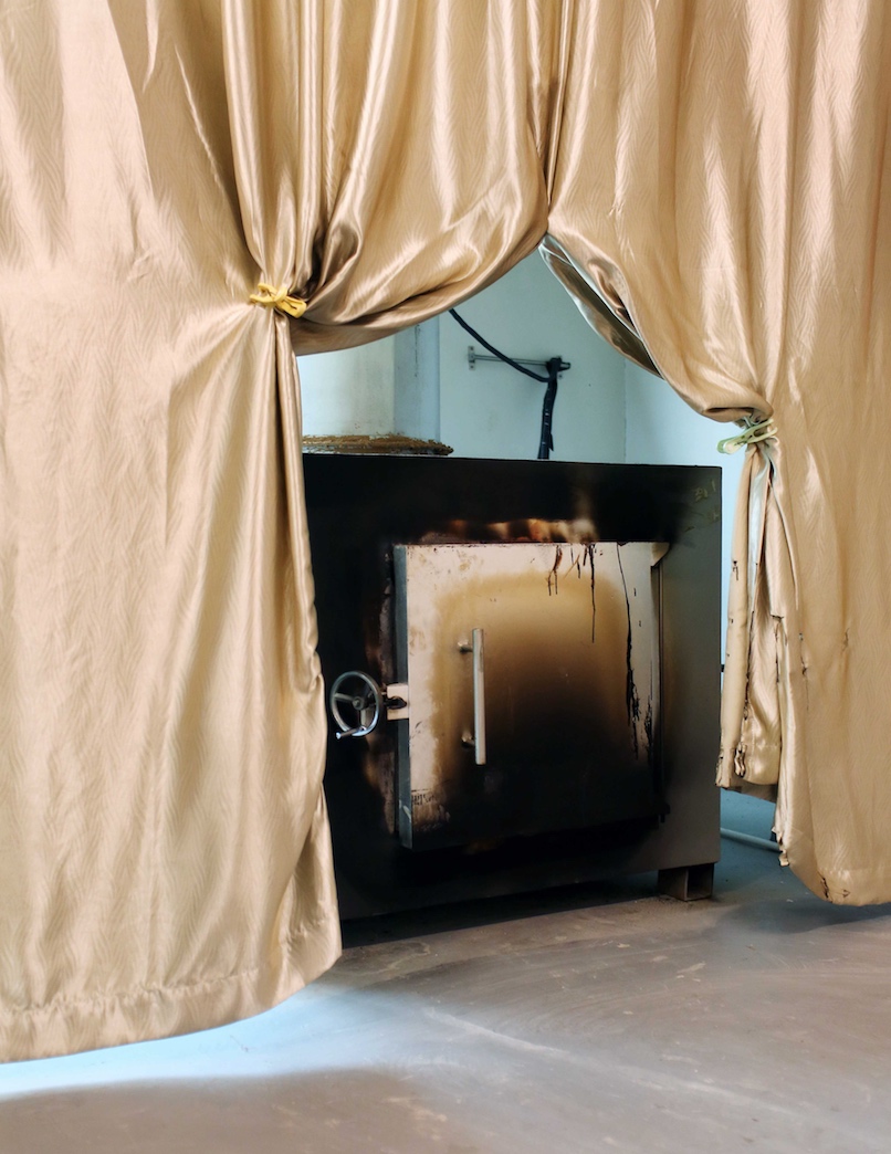 然后宠物就会被推进火化工具内。