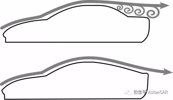 与传统的阶背式车尾设计相比,溜背光滑的表面能有效减少汽车后窗位置处所产生的气流分离区,从而使得背压增加,抵消部分正压,使前后压差阻力减少,有效降低分组系数。此外,由于车尾涡流减少,气流对车尾产生强大的下压力,能提高车辆在高速行驶过程中的车身稳定性,而溜背车尾造型也能使得车辆前后重量配置更容易实现50:50的黄金比例,因此几乎所有跑车都采用空气动力学表现更好的溜背式设计。