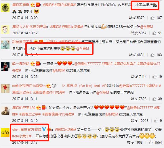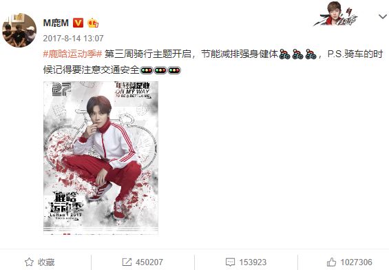 以2017年第三季度发力的鹿晗运动季为例,每周都会更新一个主题,比如骑行、篮球、排球。而骑行主题的鹿晗运动季刚好可以和他代言的共享单车品牌结合起来。