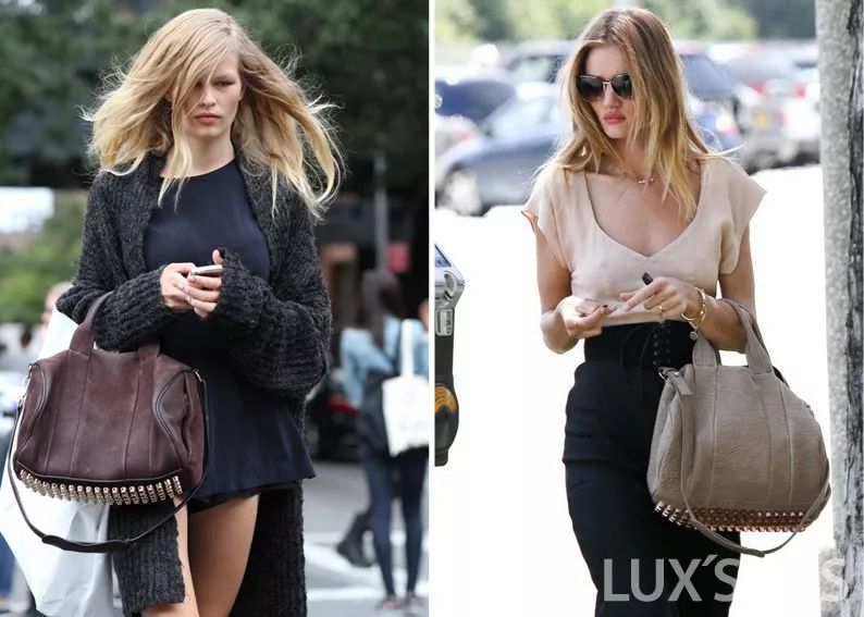 底部的铆钉设计打破了以往水桶包的无聊感,朋克范儿十足。