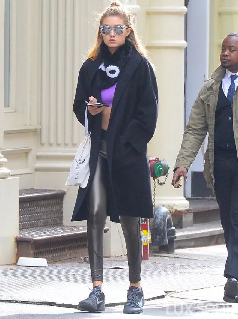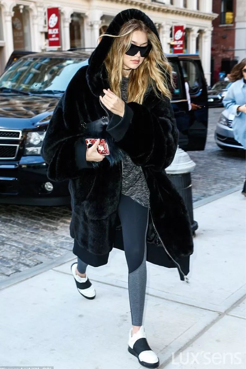 而且大家在样式的挑选上面千万不要担心,其实可以尝试不同风格与内里的运动装备混搭,比如网红Gi(Gigi Hadid),尝试过毛绒大衣。